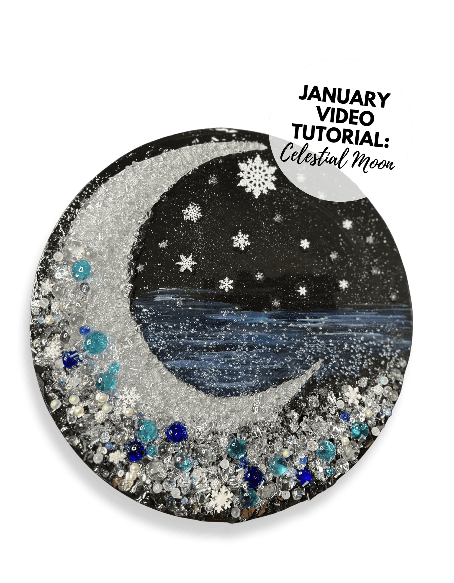 In this monthly workshop membership you’ll get a new quick and easy online tutorial that teaches you to paint, then add glass and resin for just a lil' bit of sparkle in your life!
