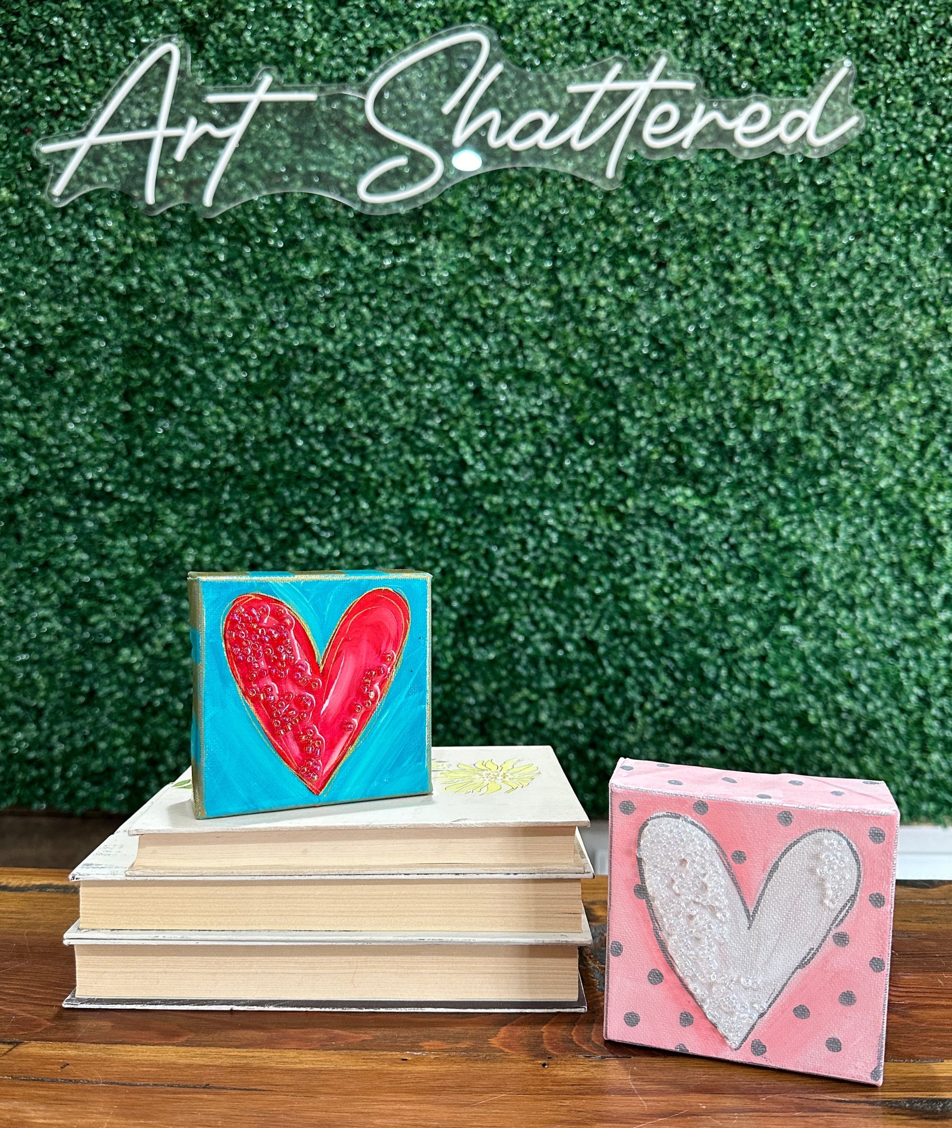 Red/Pink/Gold Heart on Teal Blue background with seed beads and resin